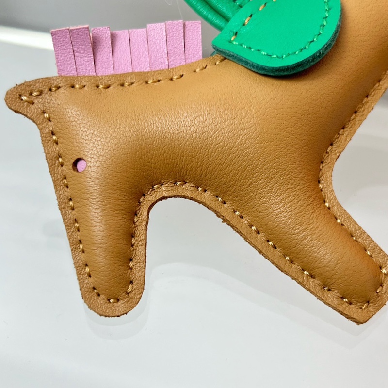 Hermès Rodeo Horse Bag Charm Created using the glovemaker’s expert craftsmanship, this bag accessory in Milo lambskin and Swift calfskin evokes the equestrian world beloved by Hermès. Whether a colorful horse or winged Pegasus, it combines soft leather with contrasting colors between the saddle, wings, mane and tail. All that's left to do is to tie it around a bag handle to add a touch of fantasy to everyday life, and imagine yourself riding towards new horizons.