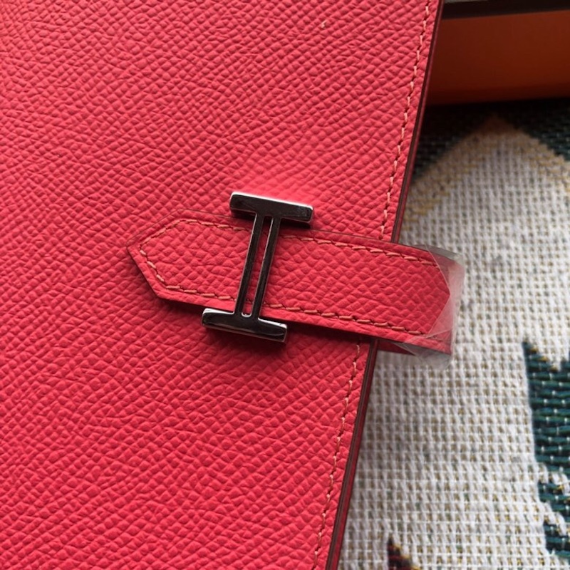 Hermes Rose Lipstick Epsom Bearn Long Wallet