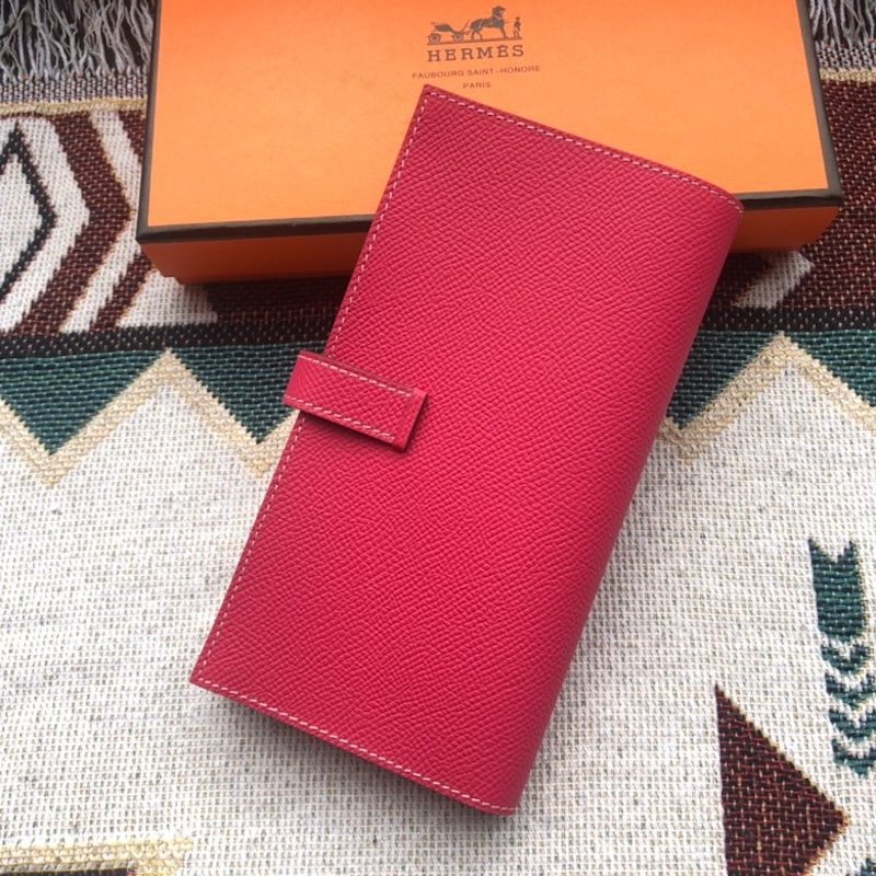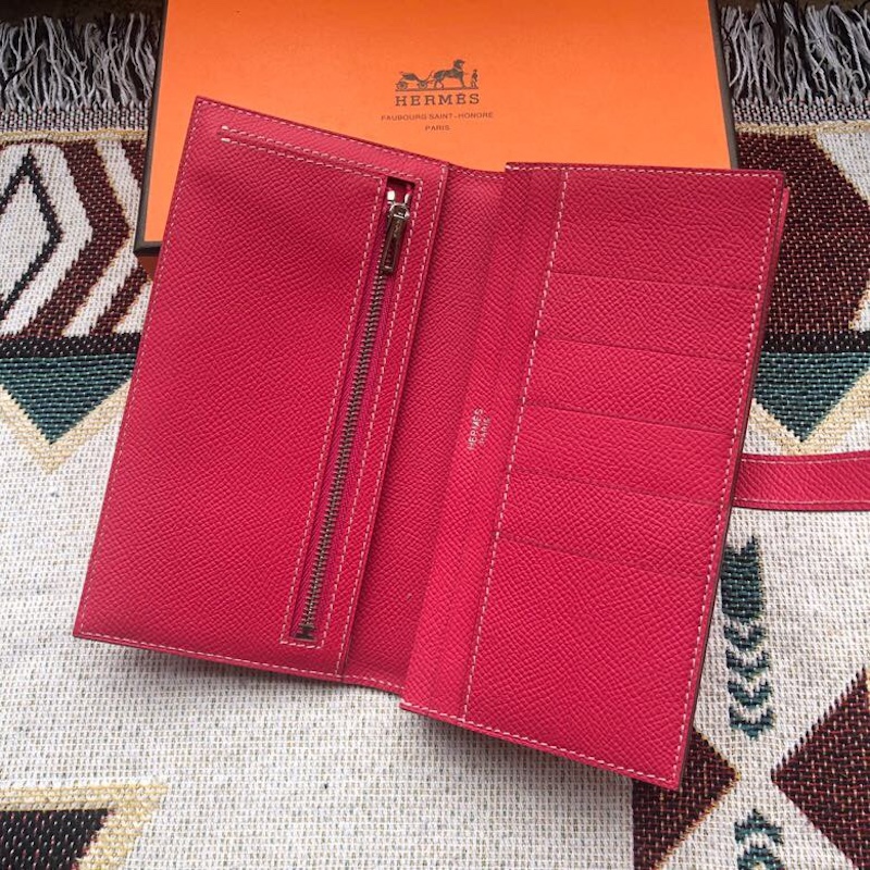 Hermes Rose Red Epsom Bearn Long Wallet