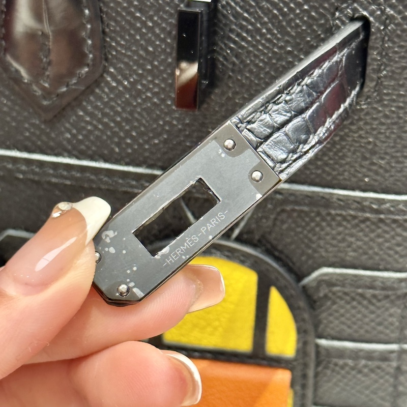 Hermes Touch Replica Handbag Store 30 Bag In Black Clemence and Shiny Niloticus Crocodile Skin