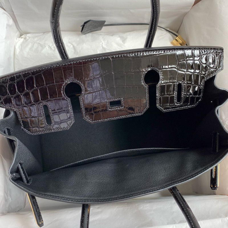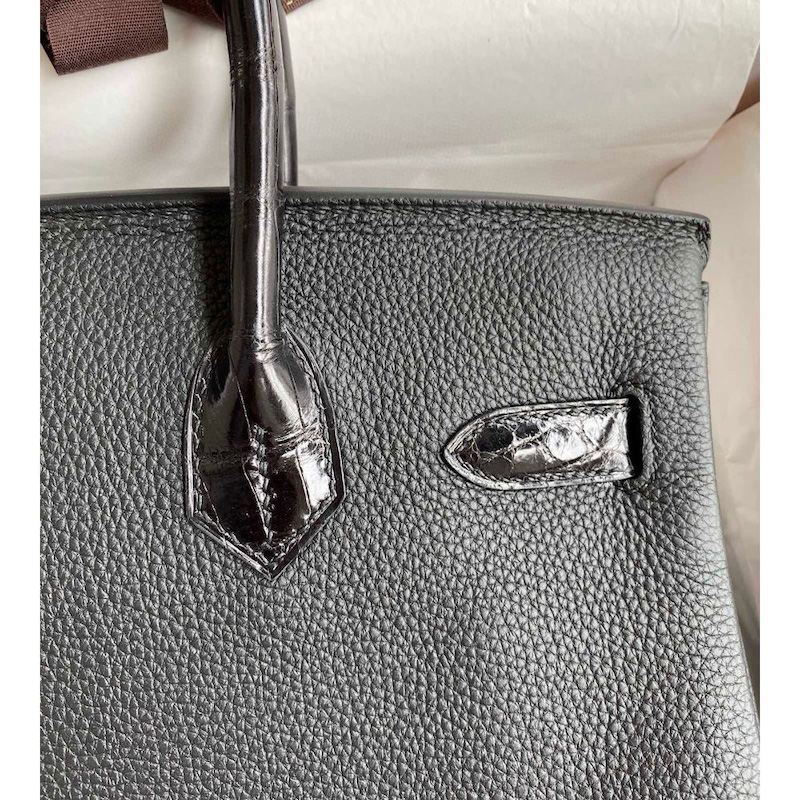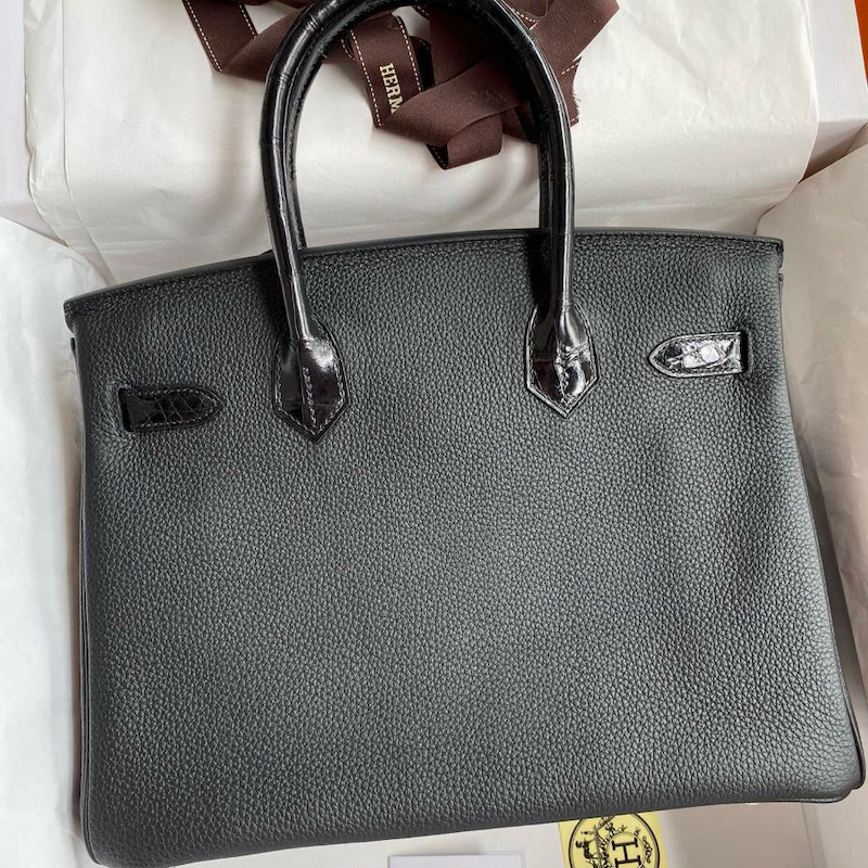 Reviews Over Hermes Touch Replica Handbag Store 30 Bag In Black Clemence and Shiny Niloticus Crocodile Skin