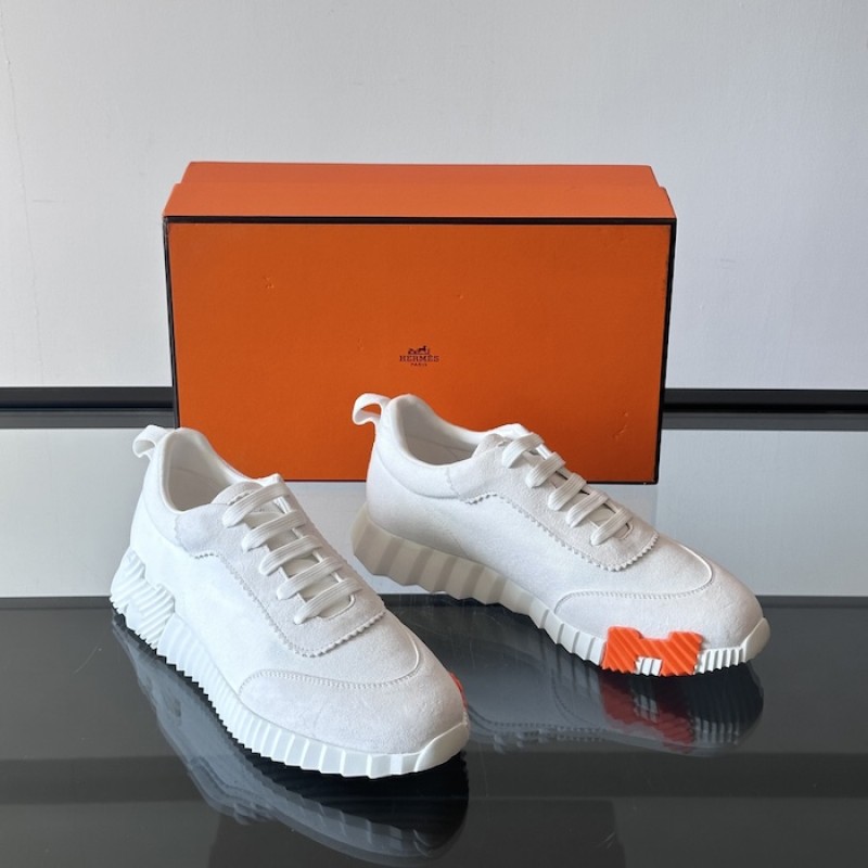 Designed for those who appreciate high-fashion aesthetics without the exclusive price tag, this Hermes Bouncing Sneaker replica delivers an unparalleled blend of style and practicality. The structured heel, breathable lining, and flexible rubber outsole ensure durability and support, while the minimalist color palette (available in classic White/Black) offers versatile pairing with any wardrobe.