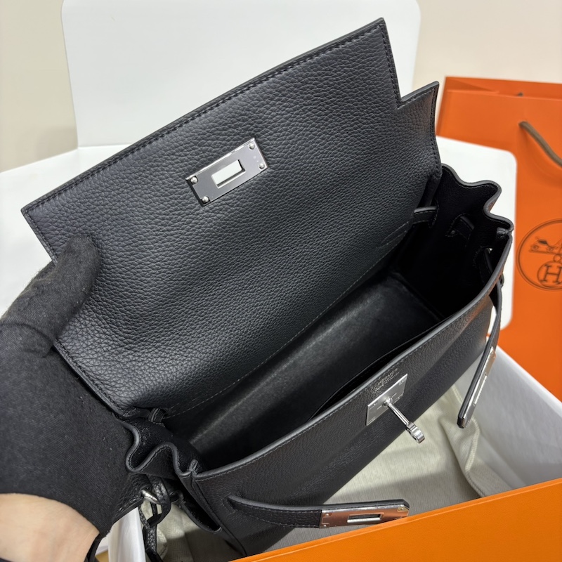 Hermes Kelly Messenger PM Bag in Black Togo Leather