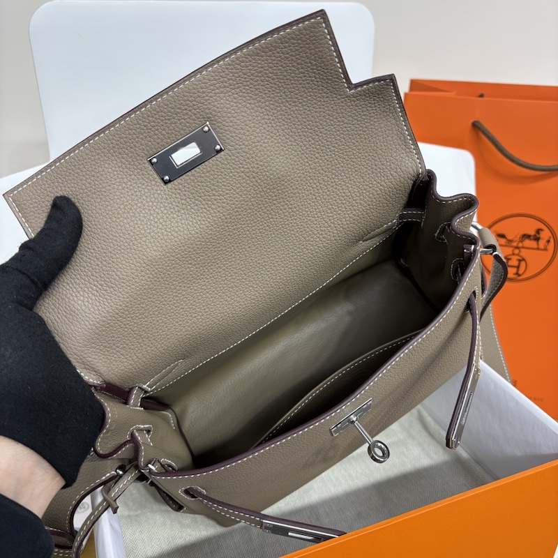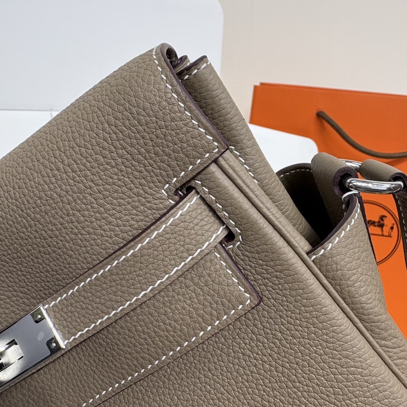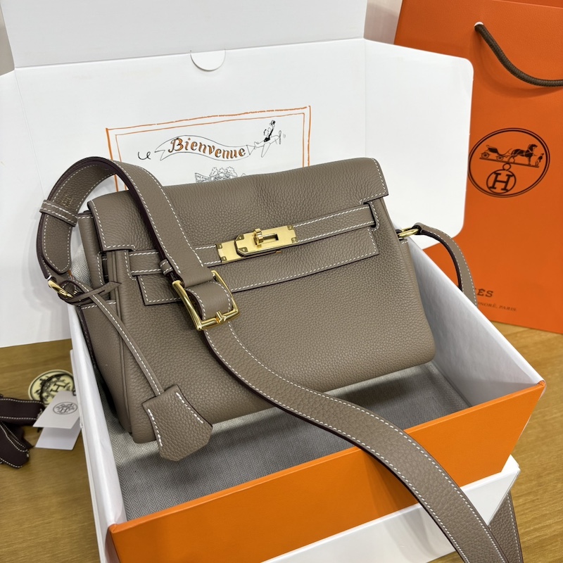 Hermes Kelly Messenger PM Bag in Etoupe Togo Leather