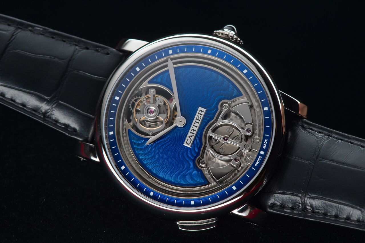 Cartier also combines their minute repeater in the Rotonde de Cartier with another complication, in this case a flying tourbillon. With the hammers prominently visible on the dial side, it leaves little to the imagination with what complication this watch is fitted. The blue guilloche dial adds further to the captivating qualities of this watch.The back of the watch further reveals how complicated it is to create such a watch, giving you an insight into the mesmerizing inner workings of this grande complication!