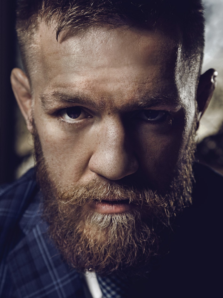 Besides his skills in the arena, McGregor stands out amongst a crowd of poorly dressed competitors whenever he speaks to the press. “My father used to say, ‘You know you’re successful when you have a custom-made suit,’” recalls McGregor who, in addition to his kickass fighting ability, is known for his distinctive, custom-made David August suits. “Before I came along, you’d see a UFC press conference and you’d see a guy wearing shorts and a baggy tee and a baseball cap. And I always look at it as: That’s a press conference. It’s a business situation. You’re supposed to handle it like a businessman, like a professional.”