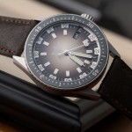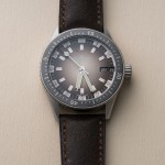 With a diameter of 43mm is the watch generously sized, but not overly so. On the wrist is actually wears larger because of the gradient dial. Its stainless steel case has a brushed finish, and while the watch is limited to only 500 pieces, it is available with either a Barennia leather strap with rubber lining, a sailcloth strap or a NATO, but also with an excellent bracelet for those who prefer an ‘all-metal’ look and feel.
