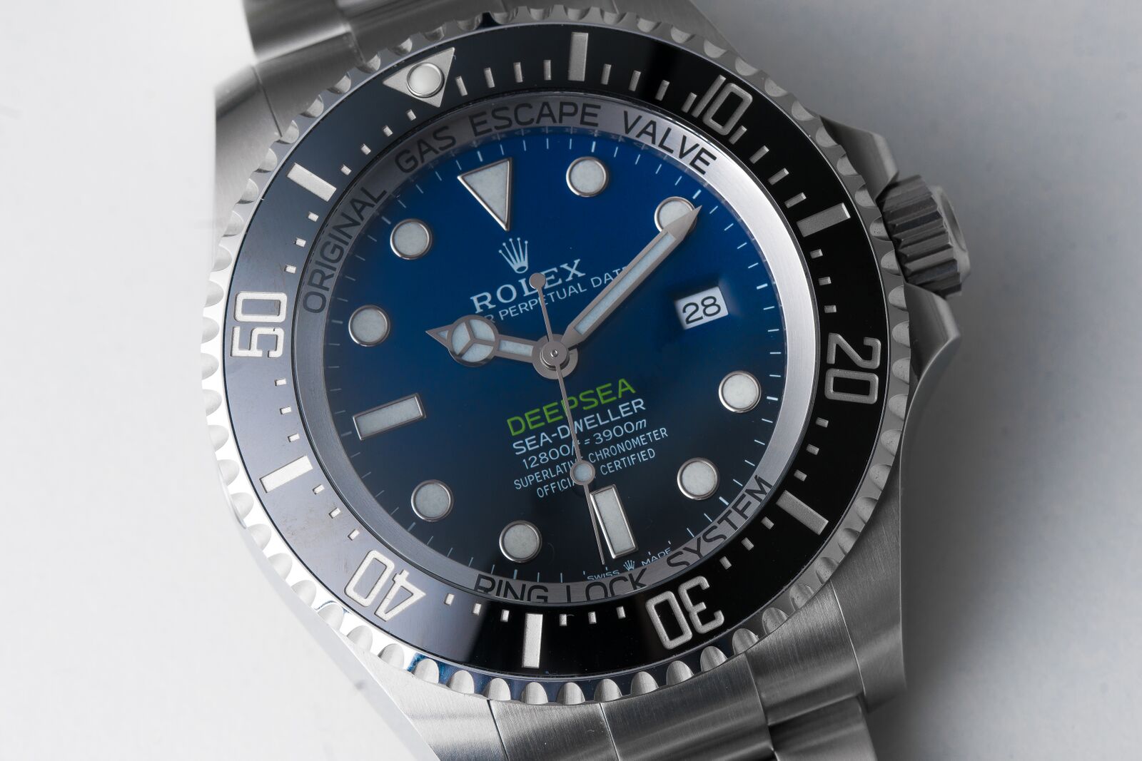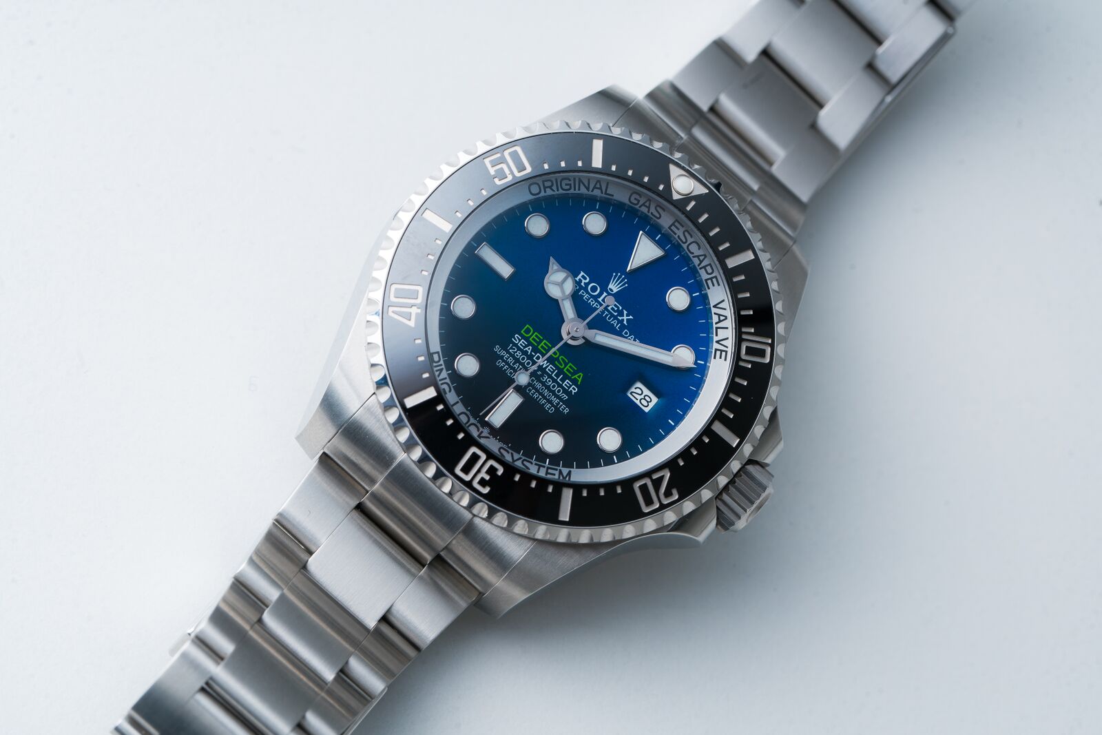 Another novelty of the Deepsea is one that you cannot see. Rolex fitted it with caliber 3235, which offers bi-directional winding, and a generous power reserve of 70 hours. Precision is further ensured, even under demanding circumstance, by the paramagnetic blue Parachrom hairspring as well as the high-performance Paraflex shock absorbers. It is certified as a ‘Superlative Chronometer’; this is a Rolex-term for a watch that has a movement that is Chronometer-certified by the COSC, but who’s precision is also checked extensively by Rolex itself once the movement is cased.