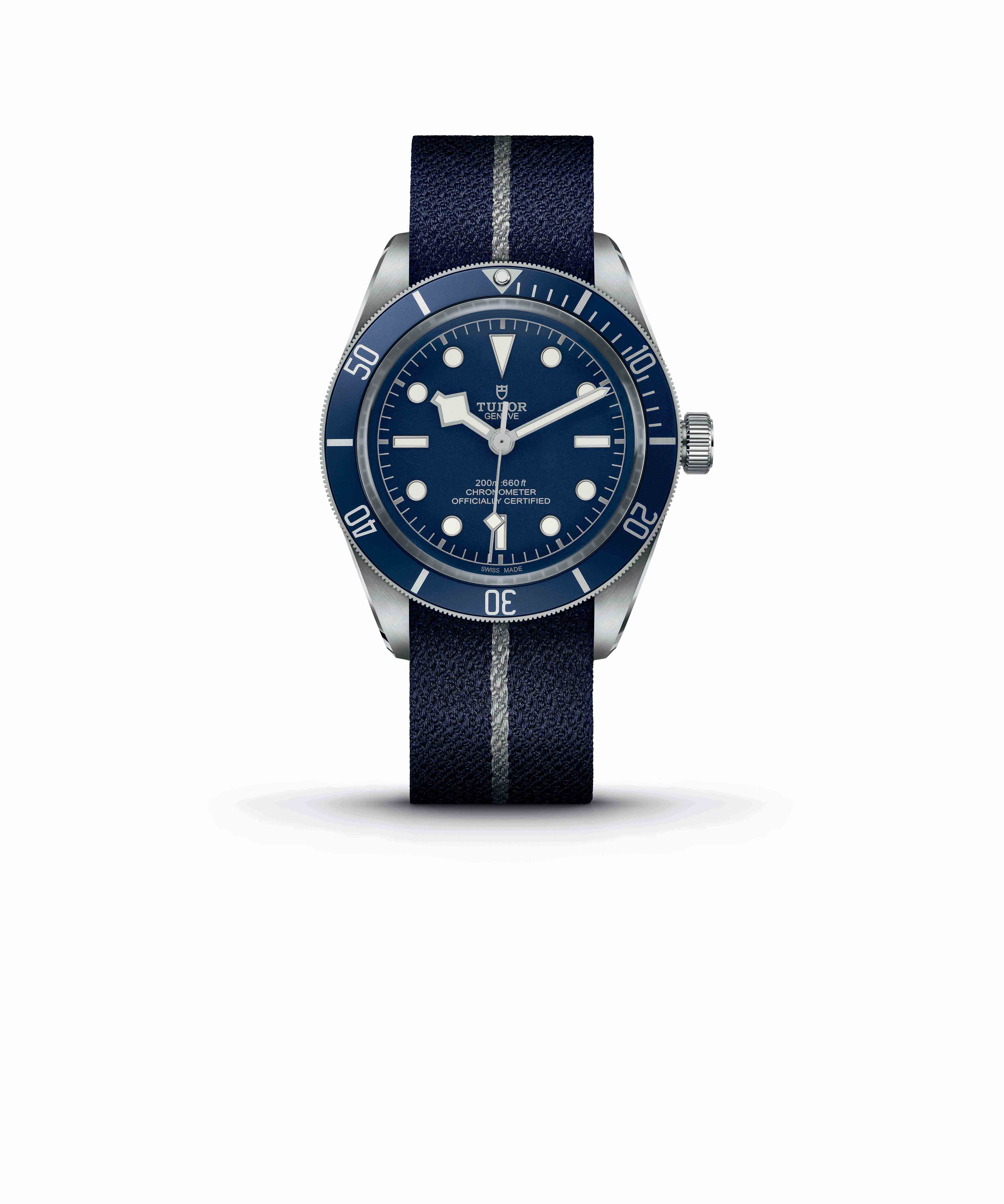 The watch is fitted with caliber MT5402, an automatic manufacture movement that comes with a few welcome features. So is the balance wheel covered by a full bridge, which makes it more shock resistant, does it have a power reserve of 70 hours and does a Chronometer-certification testify the movement’s precision. Tudor is offering their latest watch on the classic stainless steel oyster bracelet, with its distinct rivets on the side, but there are also other options for those who feel that the dial and bezel offer not enough blue. The blue ‘soft touch’ strap looks almost like a suede leather but is a high-performance synthetic material that offers superb wearing comfort and doesn’t mind getting wet. Those who prefer their strap even more sportively can opt for the blue NATO-style strap with centerline in silver. While the new Black Bay Fifty-Eight in blue is not a limited edition, its popularity will most likely mean that collectsors better hurry to official Tudor-retailers such as Watches of Switzerland and Mayors, to ensure that they can enjoy their great new watch this summer.