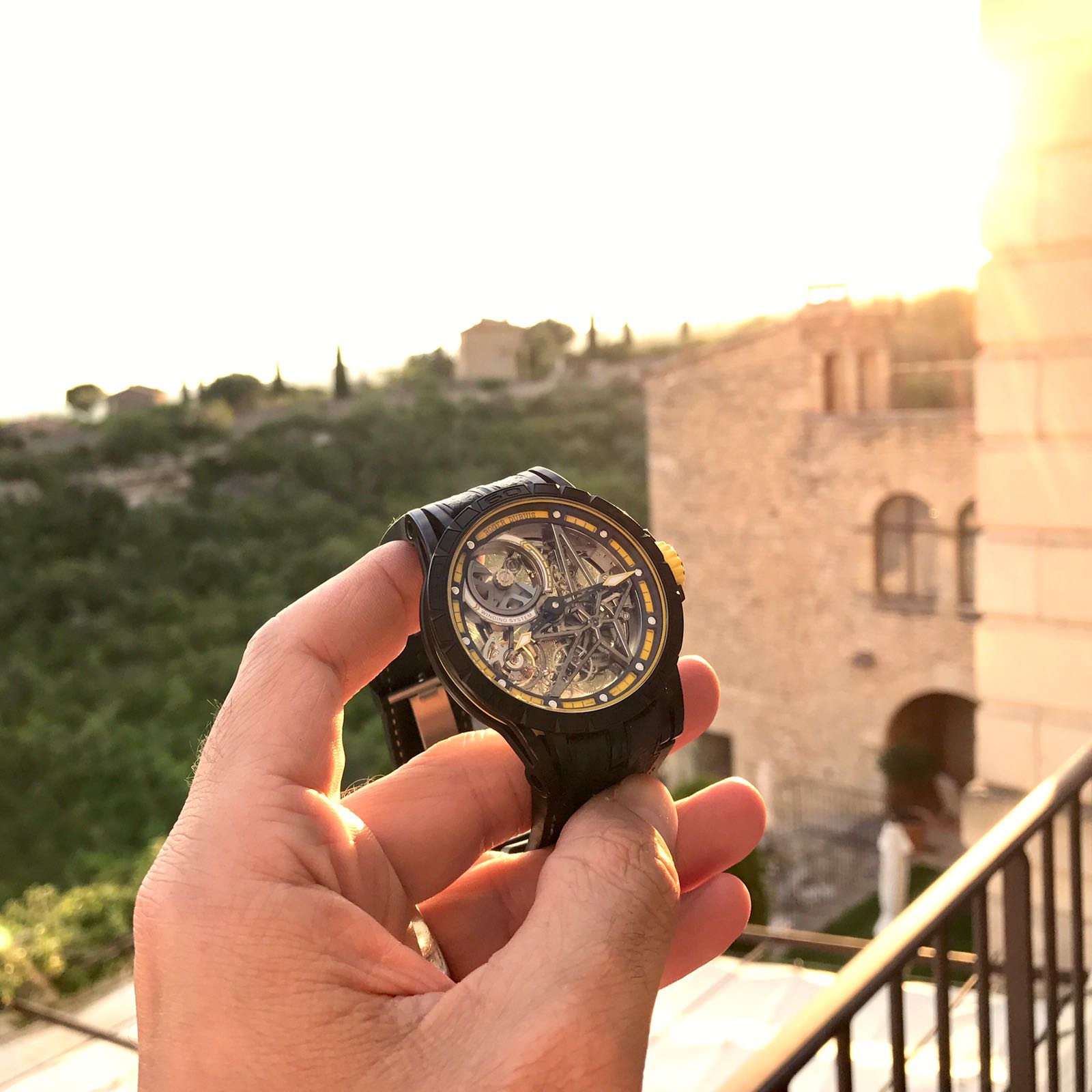 The Roger Dubuis Excalibur Spider Pirelli tells that it is time for lunch, after which it is time to drive into the Provence. The air is perfumed with a faint lavender scent as we explore this beautiful part of France, with the wind going through our hair.